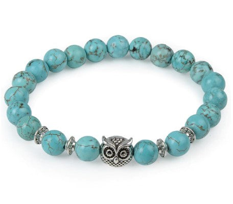 Apportez une touche d’élégance à votre poignet avec ce ravissant Bracelet Hibou en Pierres Naturelles Bleu Vert et Argent.
