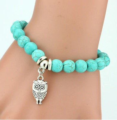 Élevez le charme de votre poignet avec ce Bracelet Hibou en Pierres Naturelles et Breloques en Turquoise.