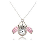 Ce Collier Montre Hibou Pendentif Rose séduira particulièrement les filles et les jeunes femmes. Son cadran, dissimulé derrière les ailes du hibou, apporte une touche de mystère et de fascination à ce bijou.