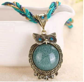 Collier Vintage Hibou Pierre Naturelle Vert 29.99
