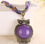 Collier Vintage Hibou Pierre Naturelle Violet 29.99